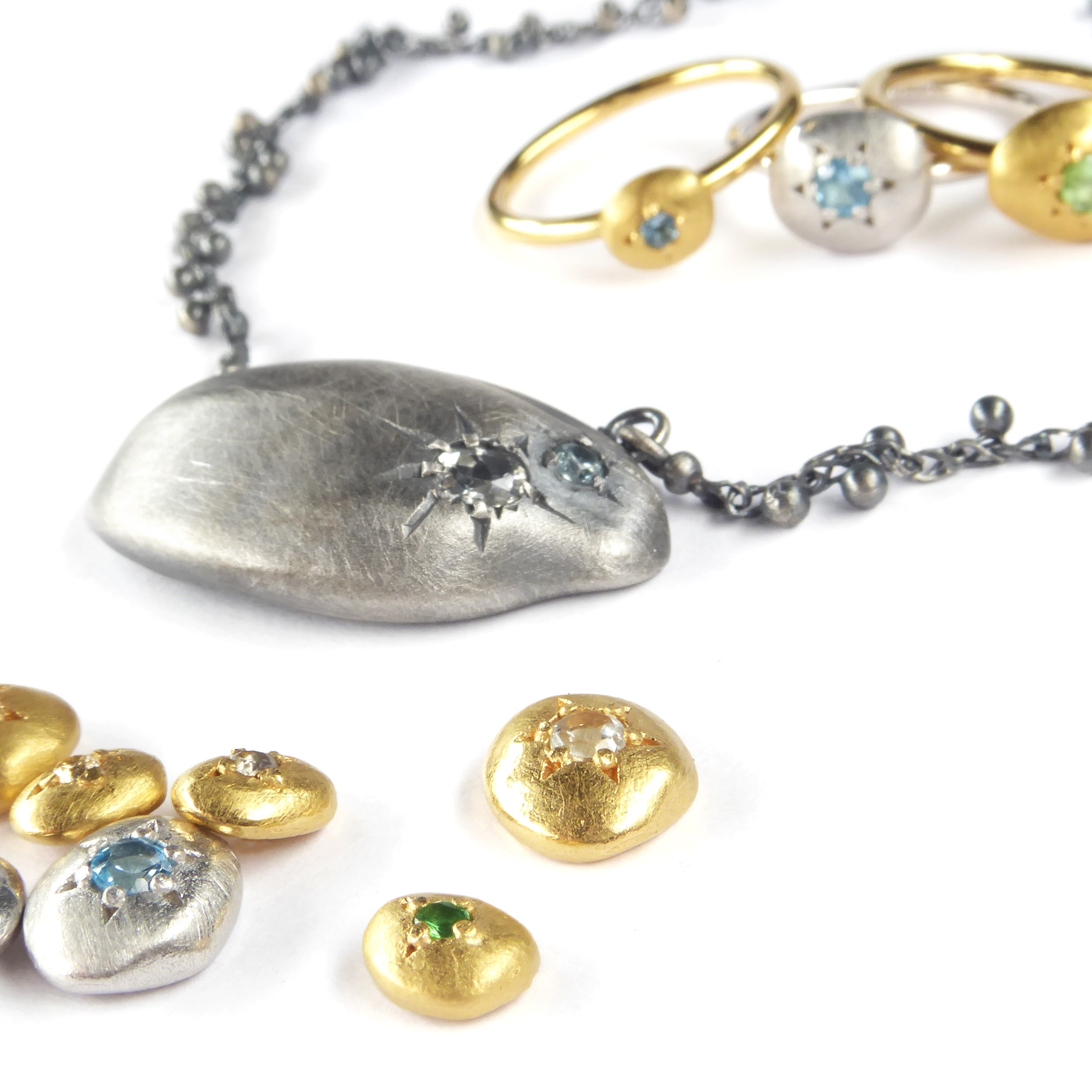 "Nach Abschluss der Goldschmiedeschule in Pforzheim hat mich meine Ausbildung nach Paris, München und über Barcelona zurück nach Pforzheim gebracht. Ich habe es mir zur Spezialität gemacht, alte Ornamente und Schmuckteile abzuformen, daraus modernes Schmuckdesign zu entwickeln und in Kleinserie zu produzieren. Dabei kommen historische Fertigungstechniken wie Feuer-Emaille, Sandguss, Handgravuren, sowie recycletes Gold und Silber, Zuchtperlen, Caméen und echte Edelsteine zum Einsatz. Als Inspiration dienen dabei alte Gärten und Parkanlagen, Kunst und Stilrichtungen des 19. und frühen 20. Jahrhunderts wie Romantik, Klassizismus, Orientalismus, Impressionismus, Belle Époque und Jugendstil bis hin zum Bauhaus."