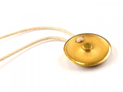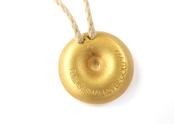 Nachhaltiges Gold aus heimischen Flüssen. Gewonnen ohne Einsatz von Quecksilber oder Zyaniden, ausschließlich mit Hilfe einer Rinnenwäsche. Das an sich sehr weiche Feingold erhält durch den Prägevorgang mehr Härte und durch die Schüsselform höhere Stabilität. Die schüsselförmige Gestaltung ist inspiriert von Münzfunden aus keltischen Zeit (Keltisches Schüsselgold).Durchmesser11mm.